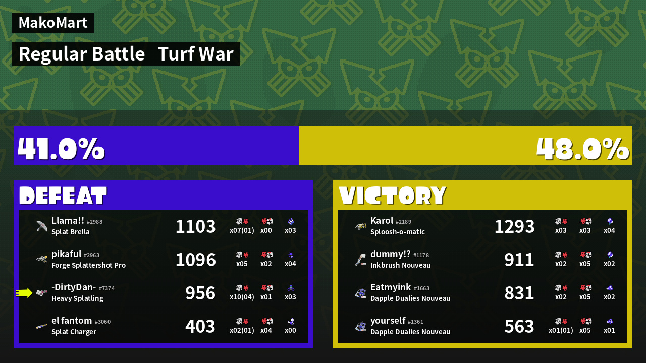 | Medals | #1 Overall Splatter #1 Enemy Splatter #1 Splat Assister | ||