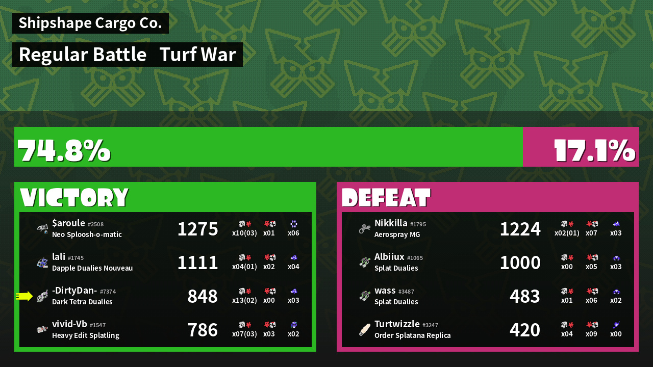 | Mode | Turf War - Regular Battle | ||