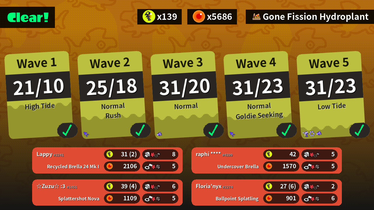 | Weapons | Recycled Brella 24 Mk I | Undercover Brella | Splattershot Nova | Ballpoint Splatling |