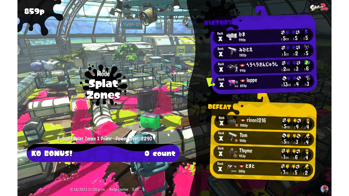 | Mode | Splat Zones - Ranked Battle | |||||||||||||||||||||||||||||||||||||||||||