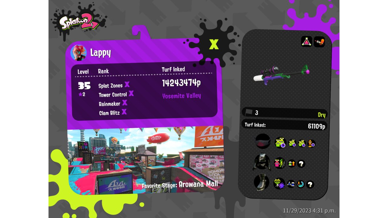 | Mode | Turf War - Regular Battle | ||||||||||||||||||||||||||||||||||||||||