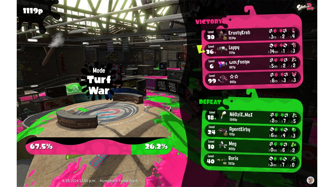 | Mode | Turf War - Regular Battle | |||||||||||||||||||||||||||||||||||||||||||