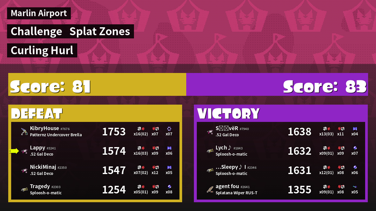 | Medals | #1 Overall Splatter #1 Splat Zone Guard #1 Splat Assister |