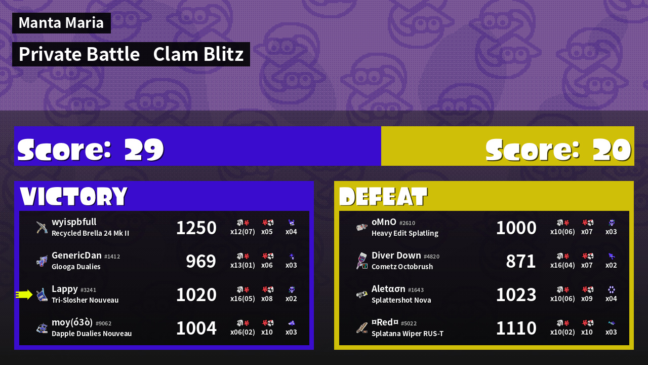 | Mode | Clam Blitz - Private Battle |