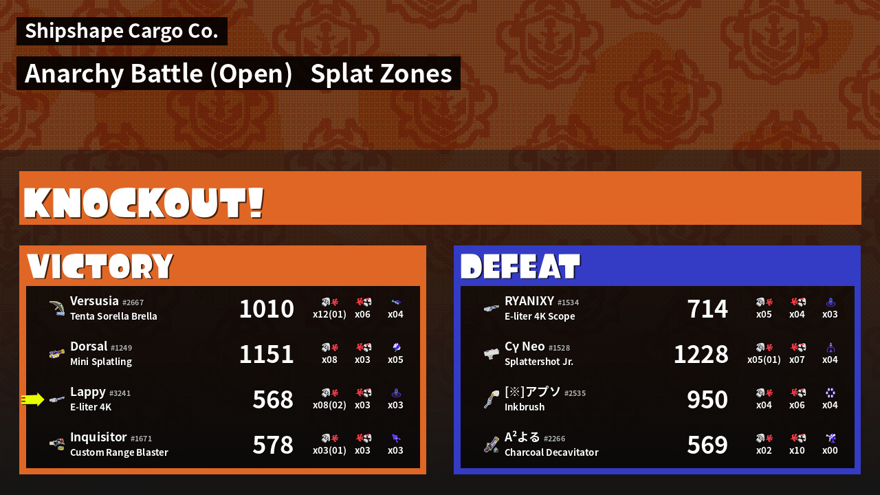 | Mode | Splat Zones - Anarchy Battle (Open) |