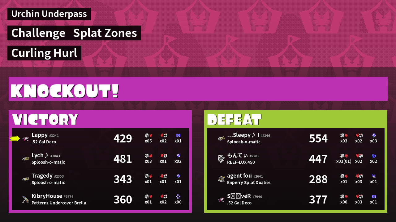| Medals | #1 Overall Splatter #1 Splat Zone Guard #1 Popular Target |