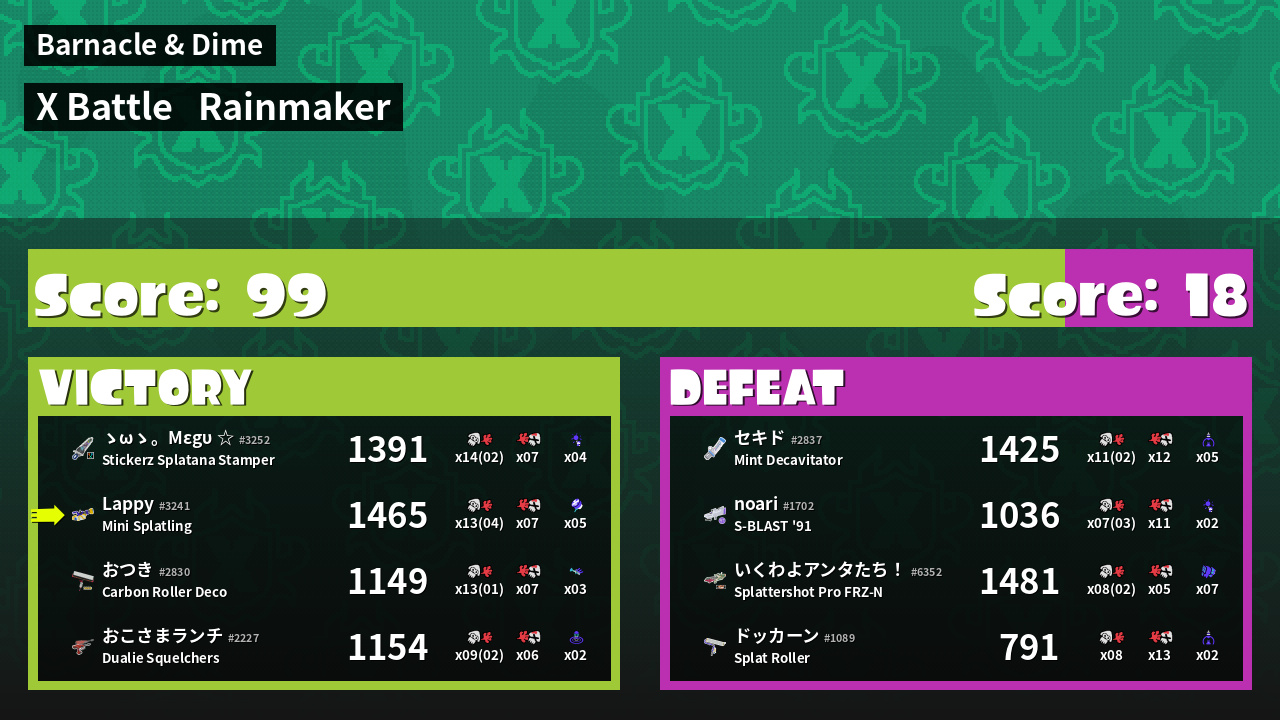 | Medals | #1 Turf Inker #1 Splat Assister #1 Checkpoint Breaker |