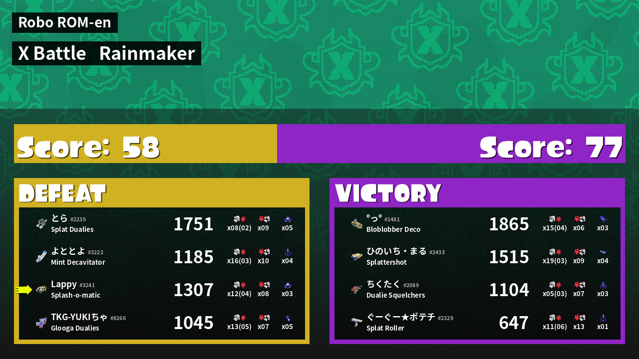| Mode | Rainmaker - X Battle |