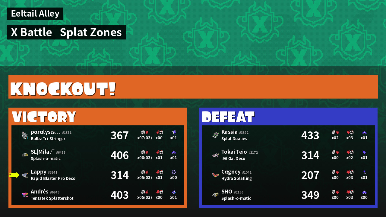 | Mode | Splat Zones - X Battle |