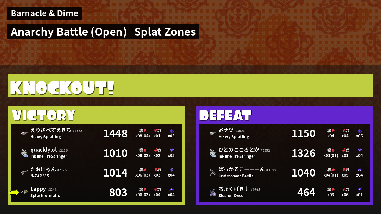 | Mode | Splat Zones - Anarchy Battle (Open) |