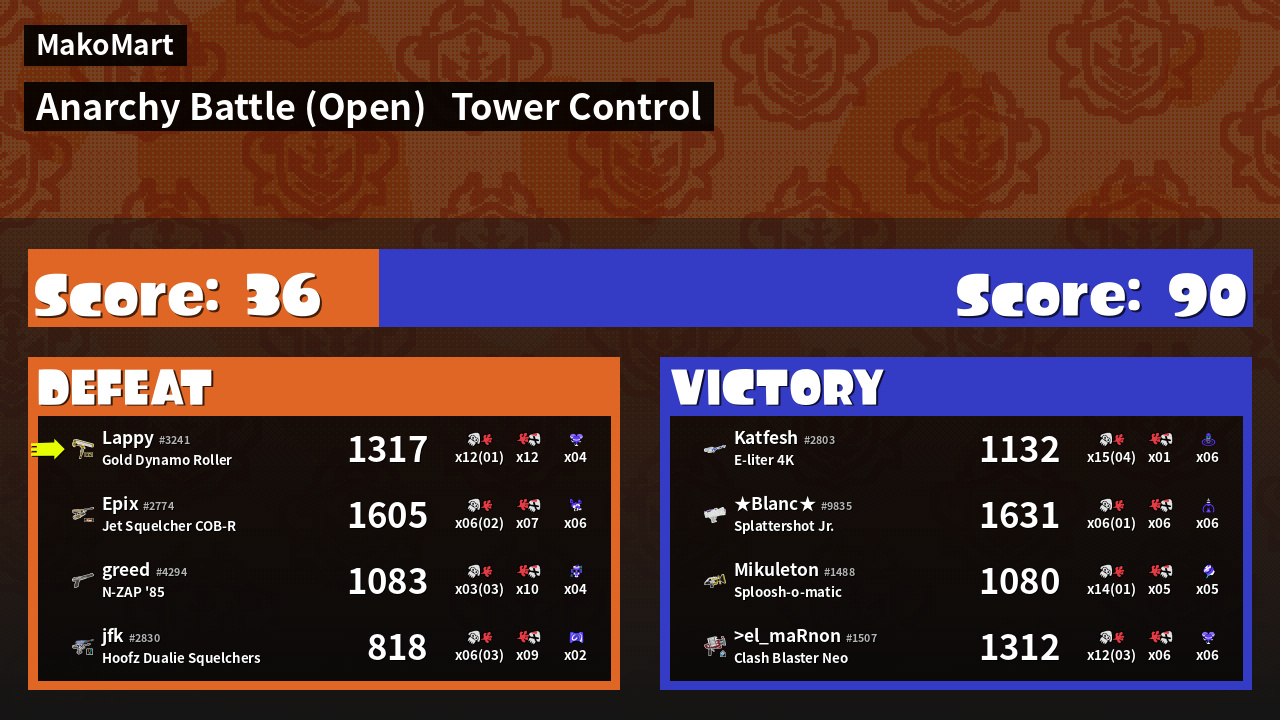 | Mode | Tower Control - Anarchy Battle (Open) |