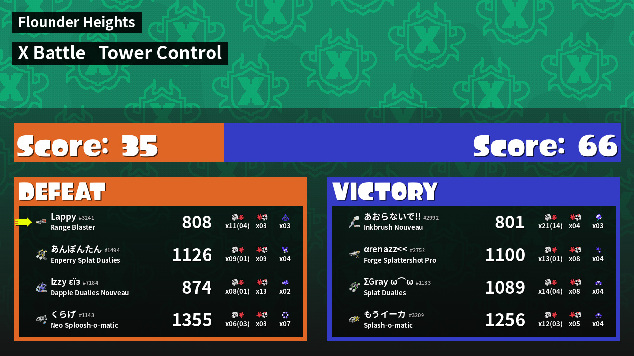 | Mode | Tower Control - X Battle |