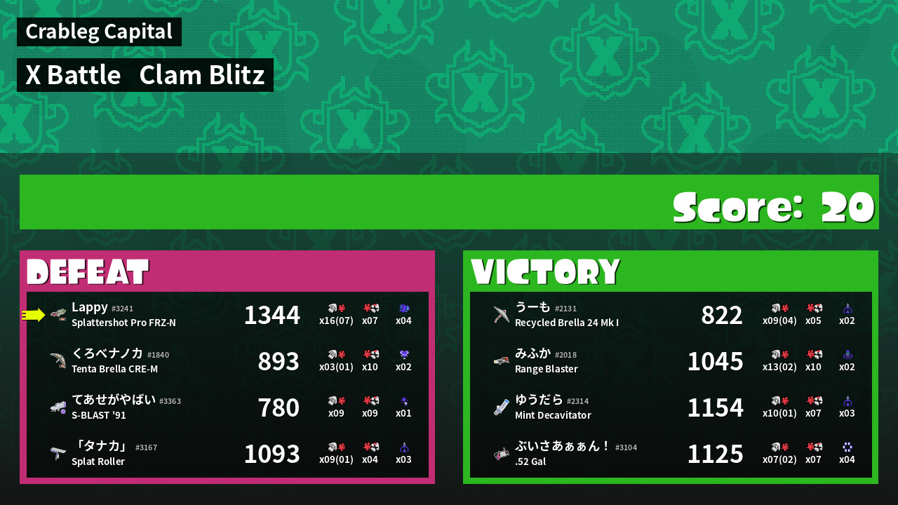 | Mode | Clam Blitz - X Battle |