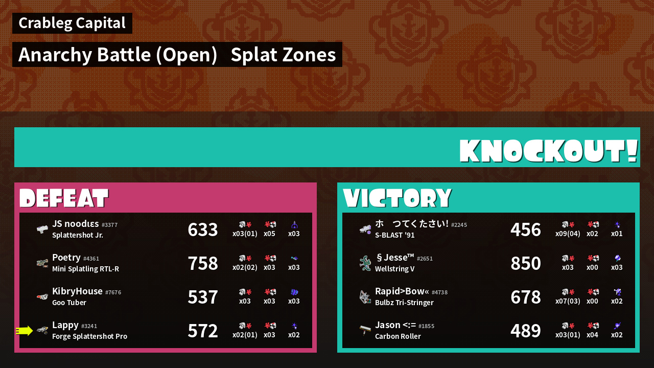 | Mode | Splat Zones - Anarchy Battle (Open) |