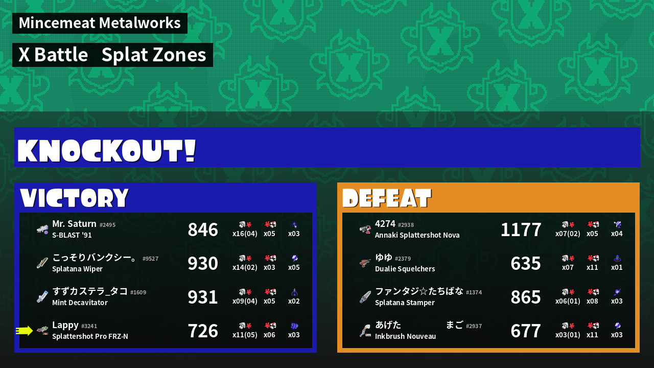 | Medals | #1 Splat Assister #2 Popular Target #2 Super Jump Spot |