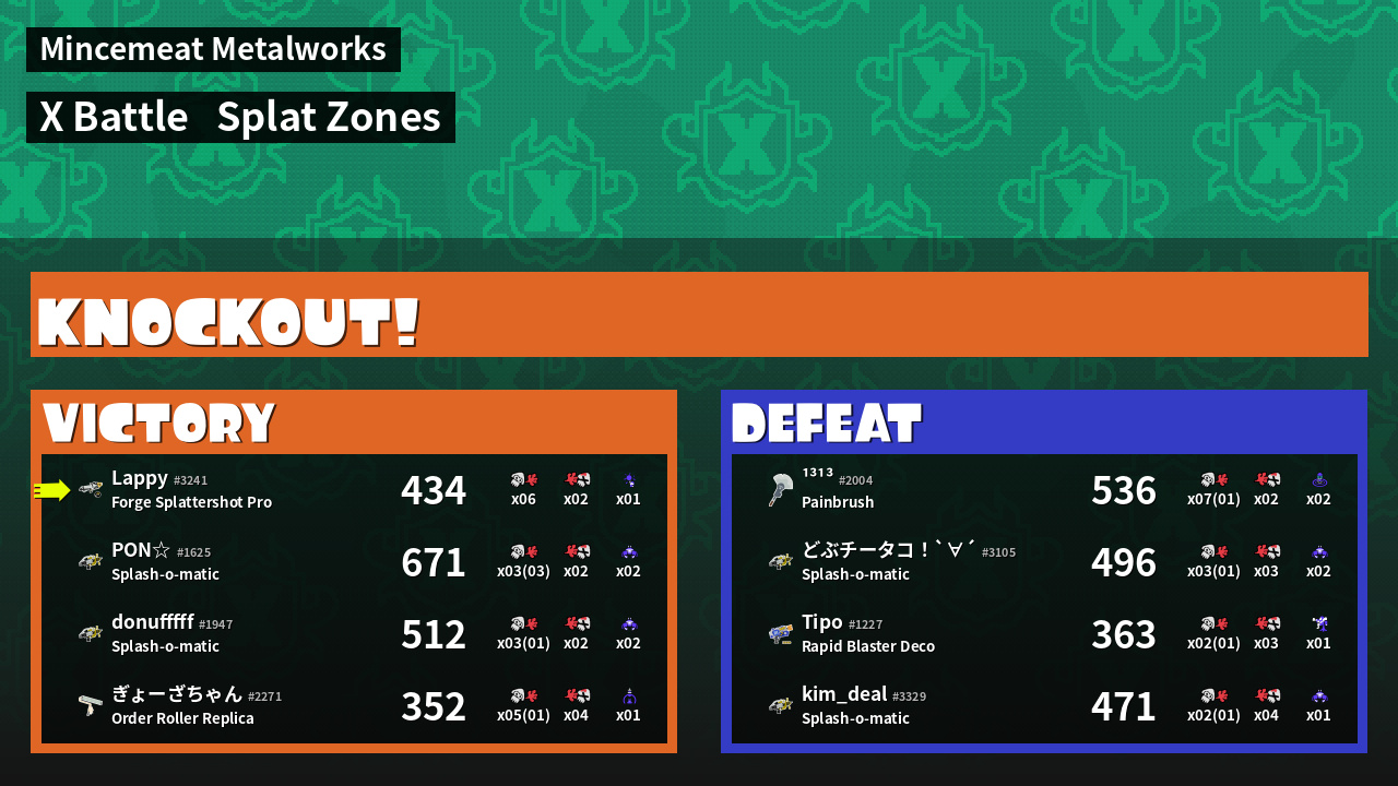 | Mode | Splat Zones - X Battle |
