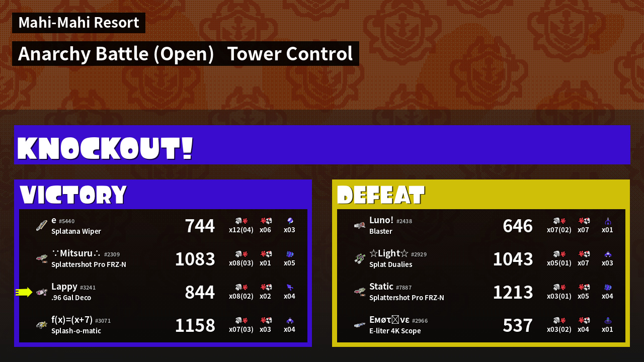 | Mode | Tower Control - Anarchy Battle (Open) |
