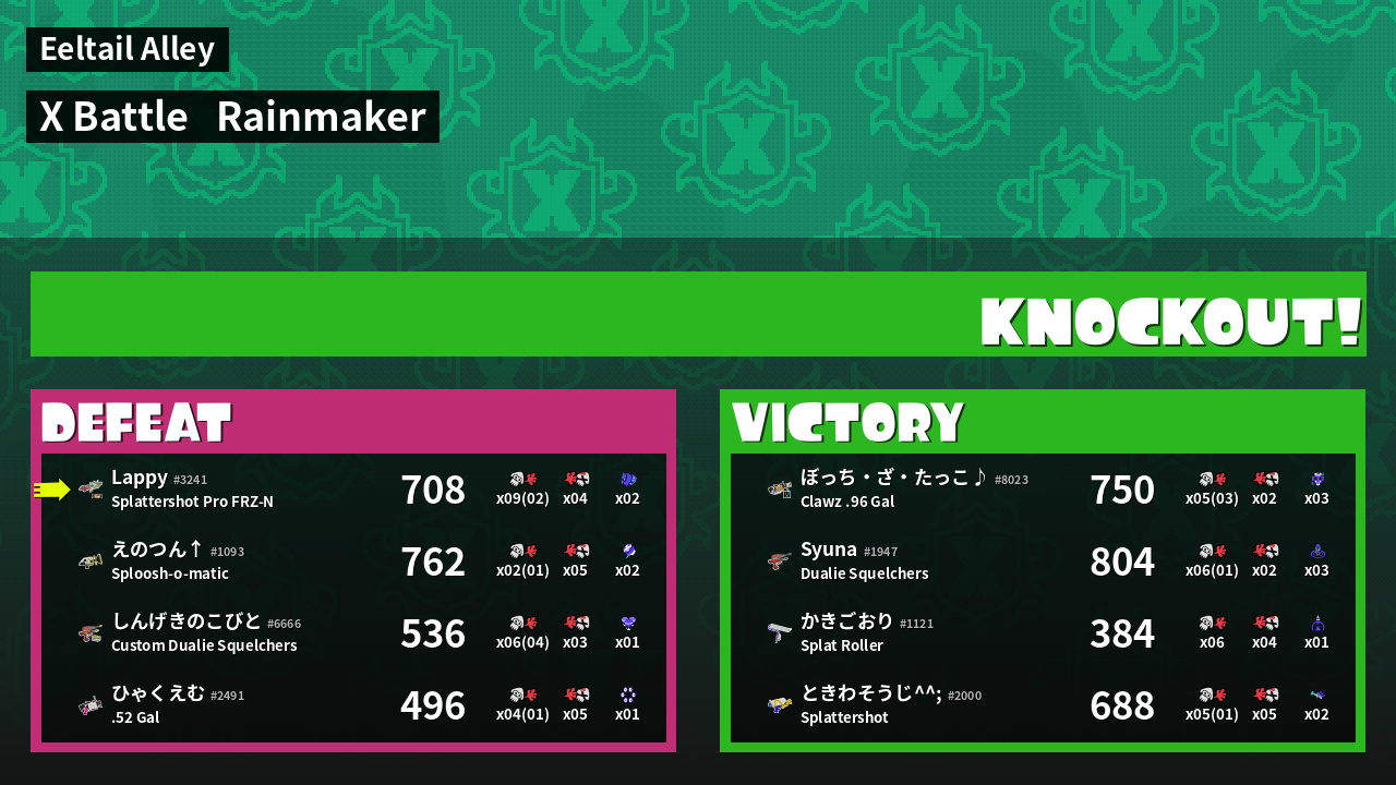 | Medals | #1 Overall Splatter #1 Popular Target #1 Enemy Splatter |