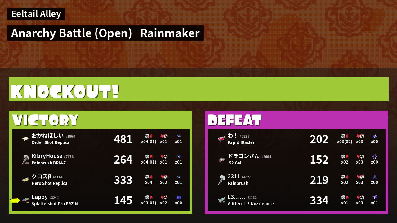 | Mode | Rainmaker - Anarchy Battle (Open) |