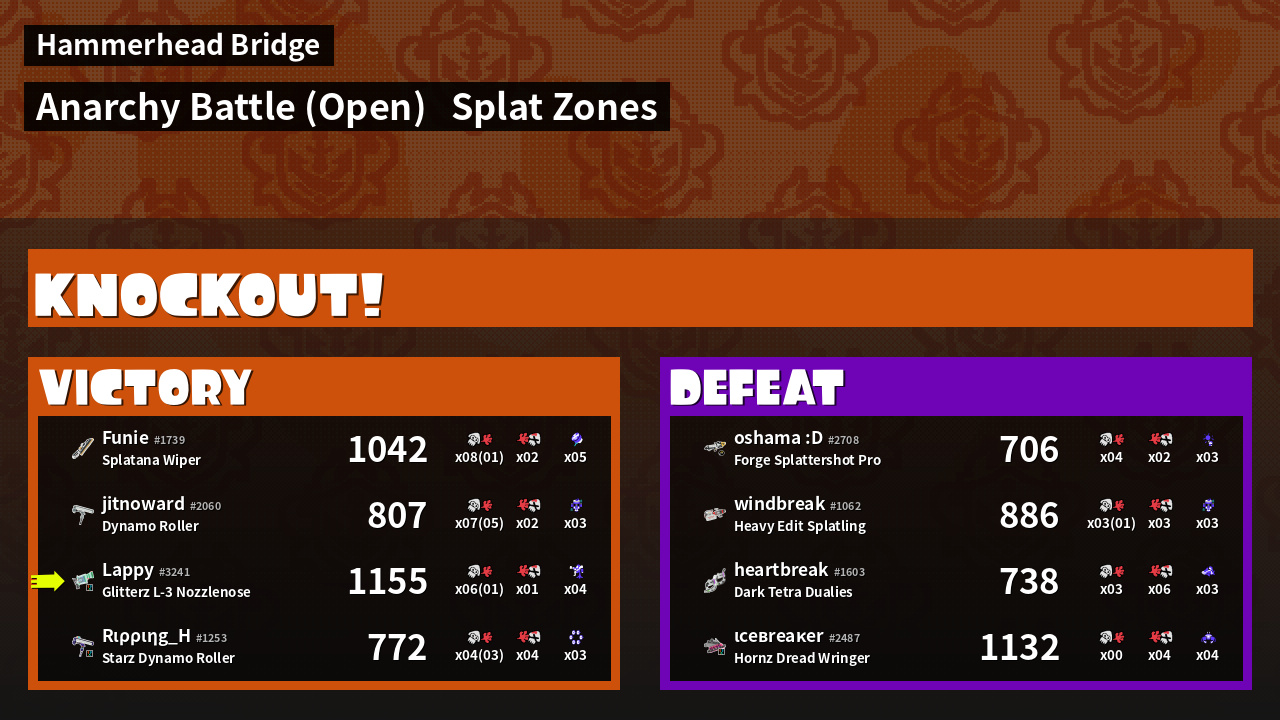 | Mode | Splat Zones - Anarchy Battle (Open) |