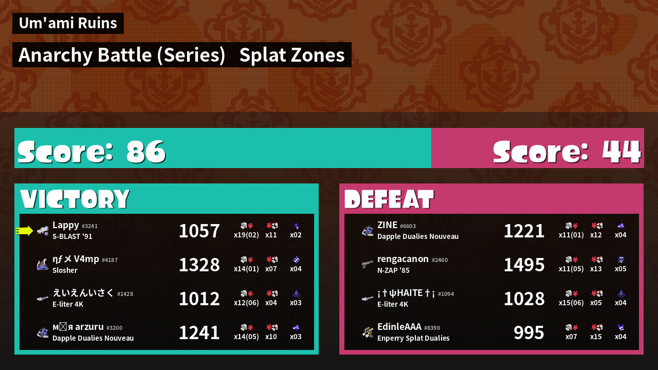 | Mode | Splat Zones - Anarchy Battle (Series) |