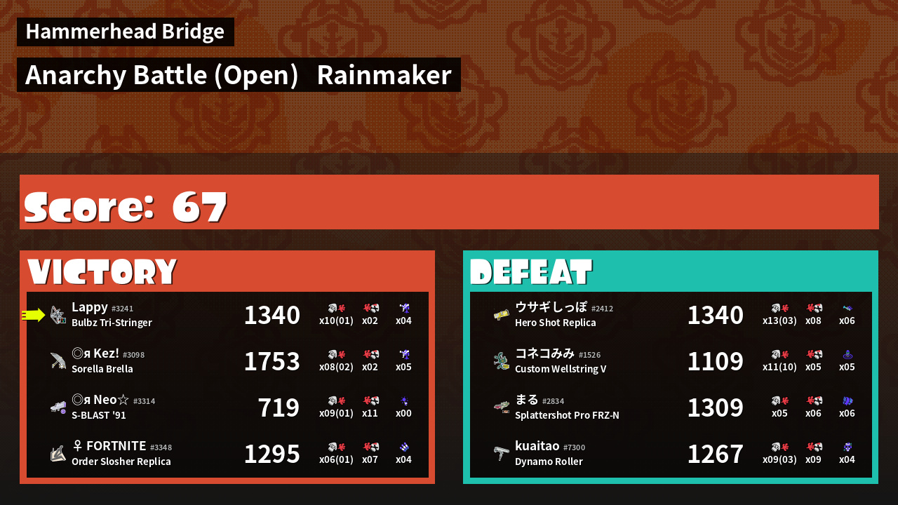 | Mode | Rainmaker - Anarchy Battle (Open) |