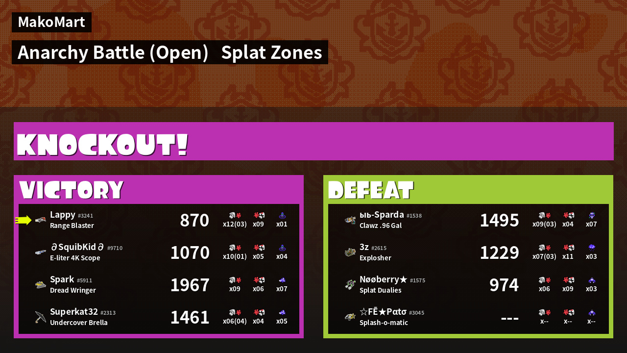 | Mode | Splat Zones - Anarchy Battle (Open) |