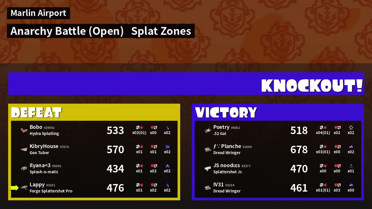 | Mode | Splat Zones - Anarchy Battle (Open) |