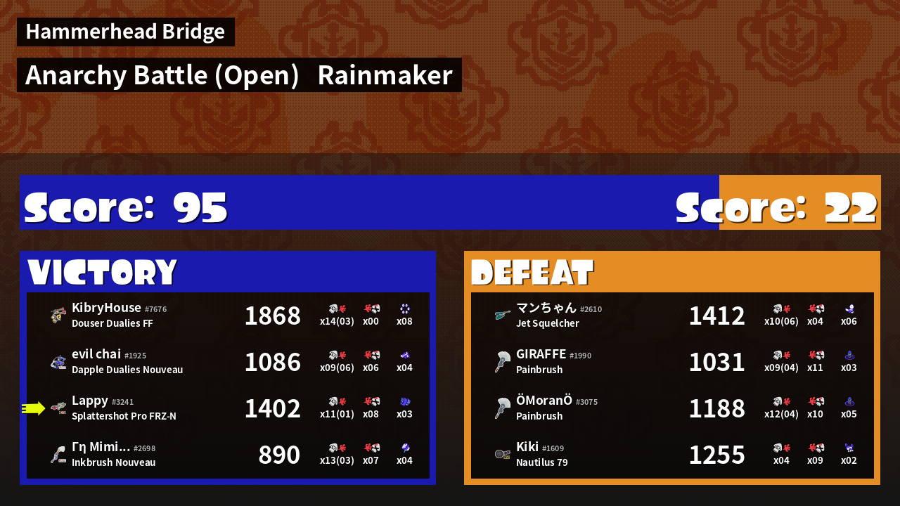 | Mode | Rainmaker - Anarchy Battle (Open) |