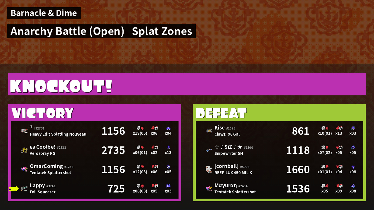 | Mode | Splat Zones - Anarchy Battle (Open) |
