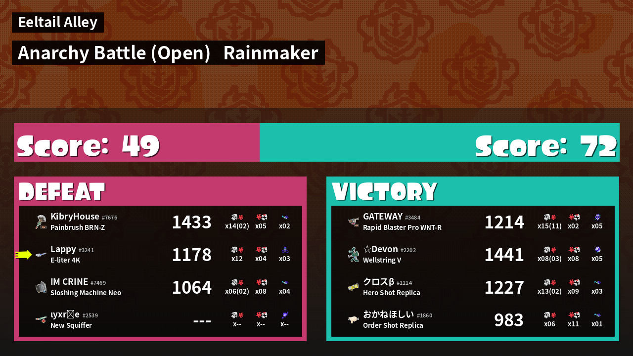 | Mode | Rainmaker - Anarchy Battle (Open) |