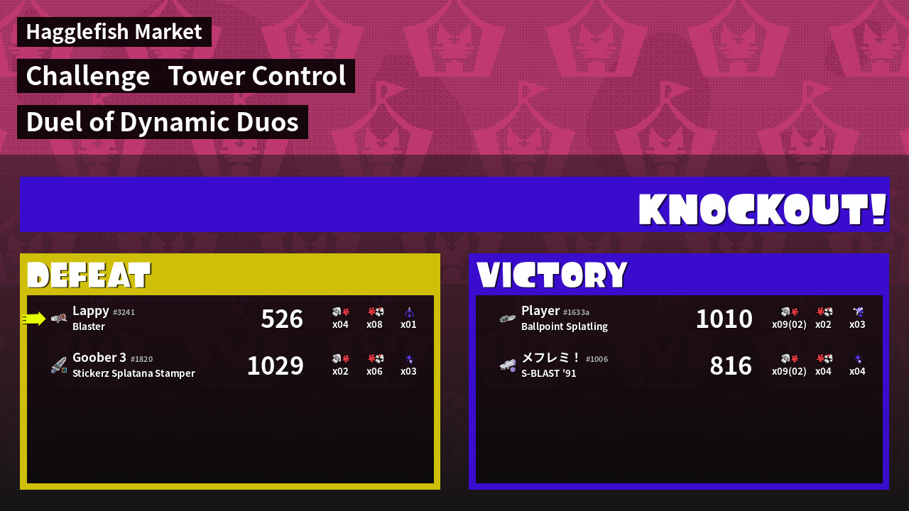 | Medals | #1 Overall Splatter #1 Super Jump Spot #1 Enemy Splatter |