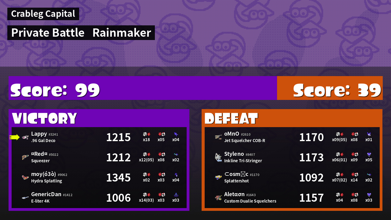 | Weapon | .96 Gal Deco ( Splash Wall / Kraken Royale) |