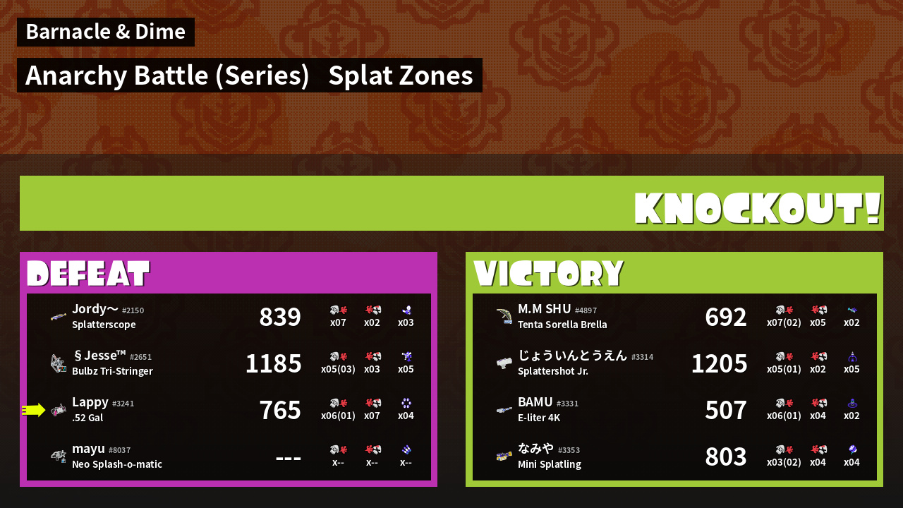 | Mode | Splat Zones - Anarchy Battle (Series) |
