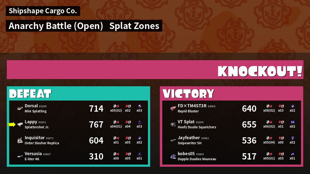 | Mode | Splat Zones - Anarchy Battle (Open) |