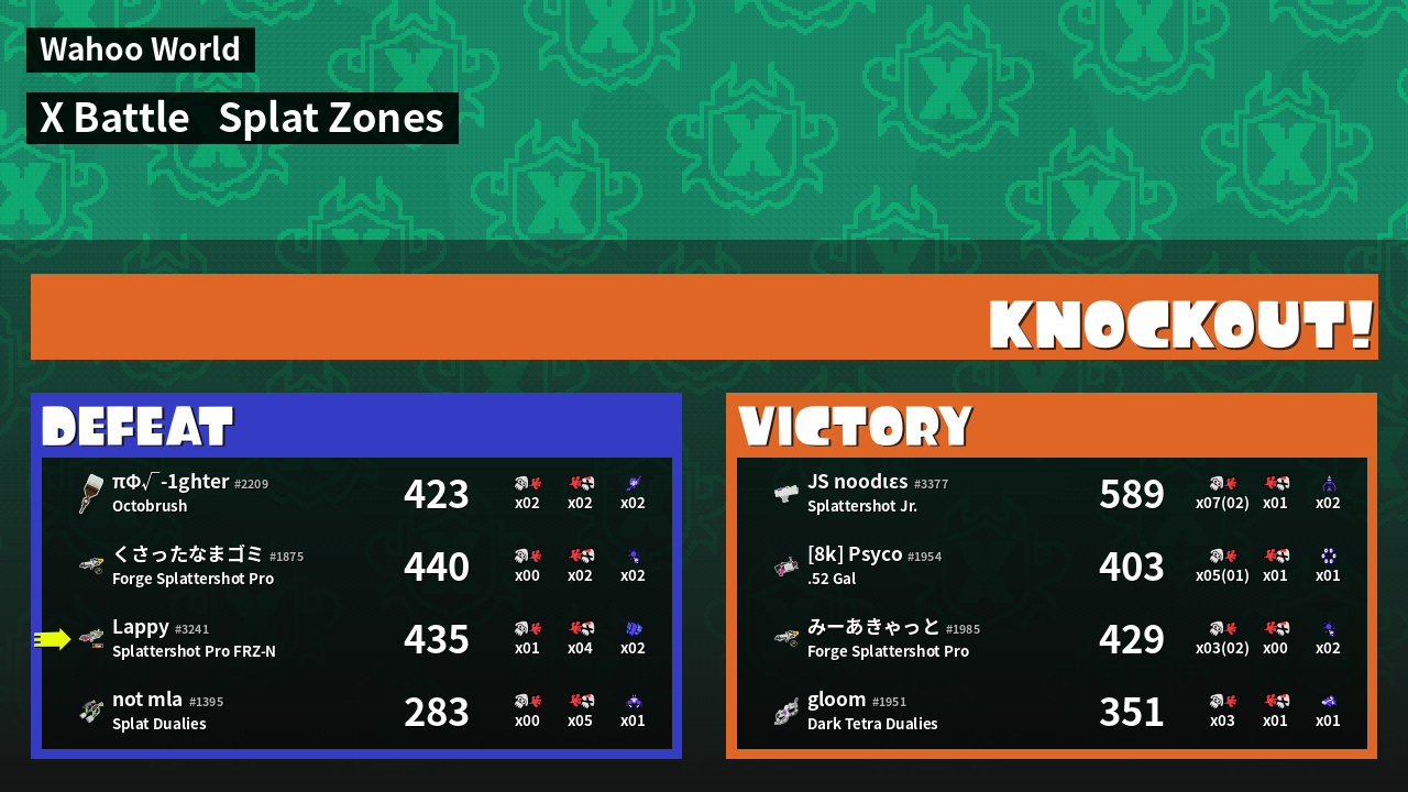 | Mode | Splat Zones - X Battle |