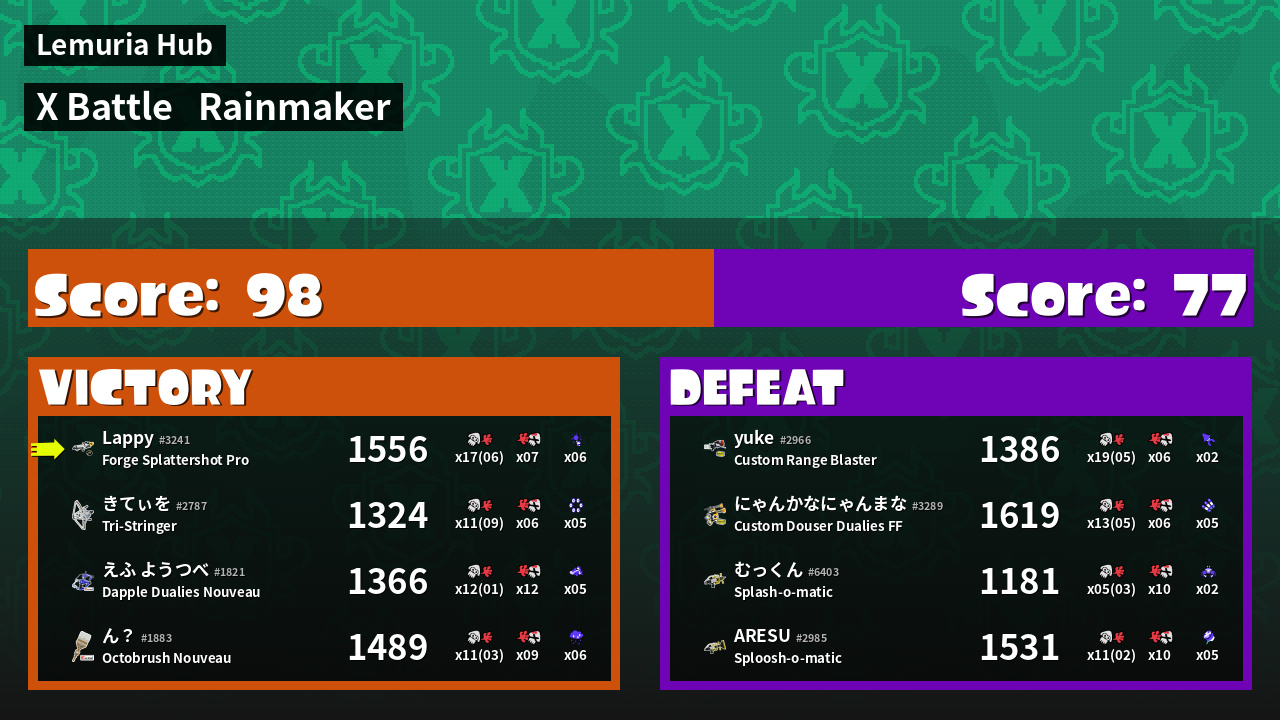 | Mode | Rainmaker - X Battle |
