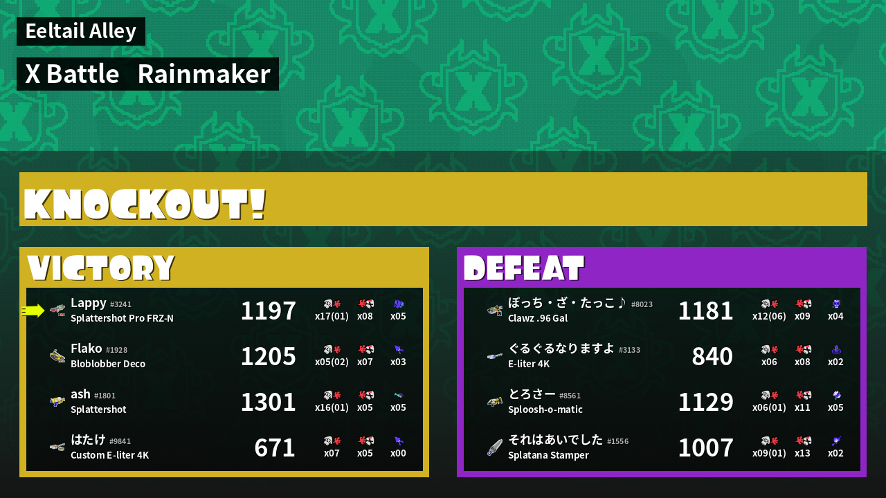 | Medals | #1 Overall Splatter #1 Popular Target #1 Enemy Splatter |
