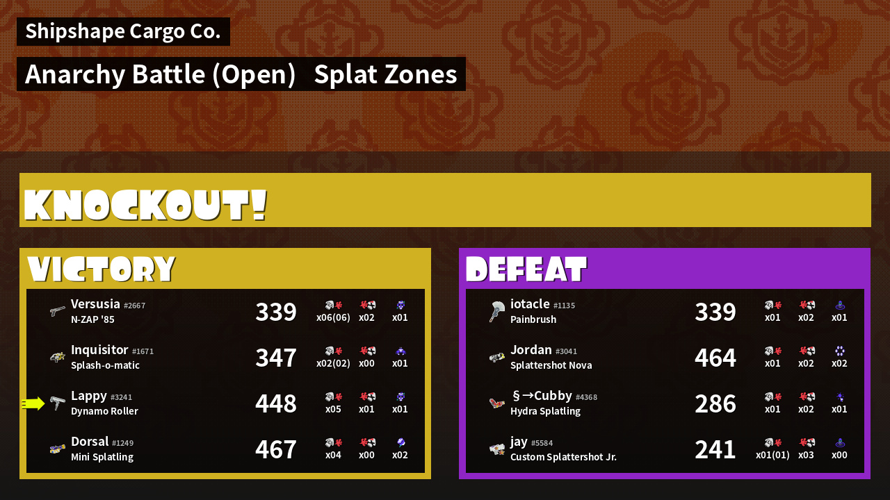 | Mode | Splat Zones - Anarchy Battle (Open) |