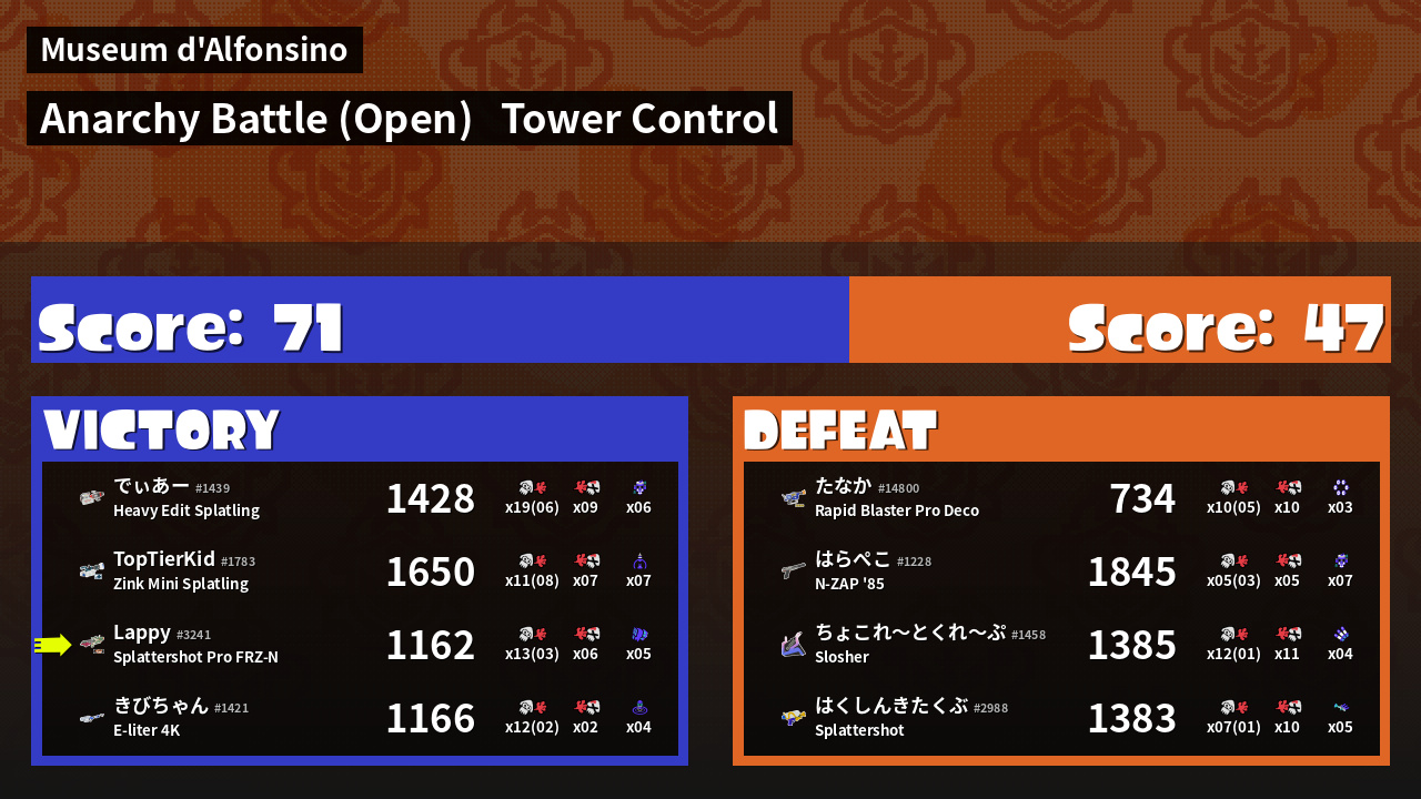 | Mode | Tower Control - Anarchy Battle (Open) |