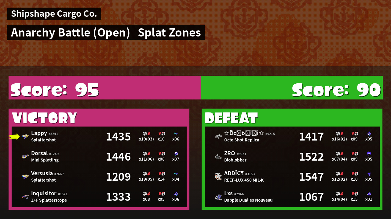 | Mode | Splat Zones - Anarchy Battle (Open) |