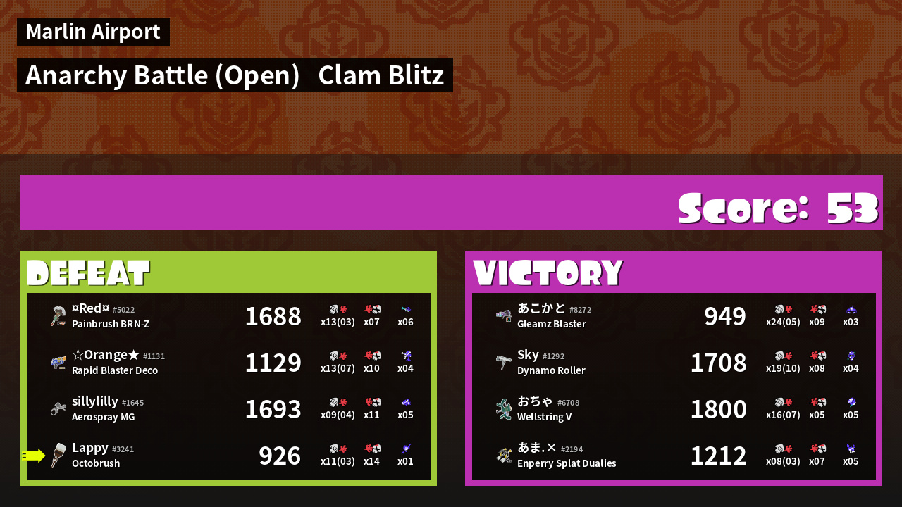 | Mode | Clam Blitz - Anarchy Battle (Open) |