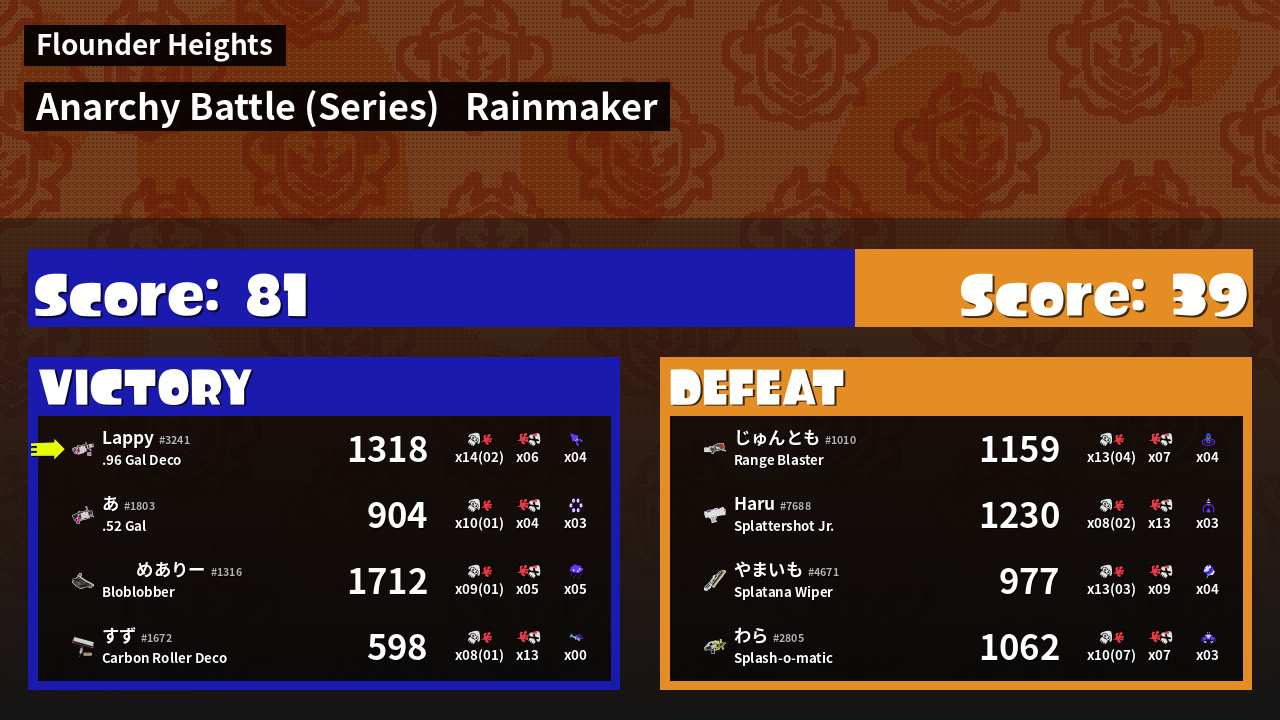 | Weapon | .96 Gal Deco ( Splash Wall / Kraken Royale) |