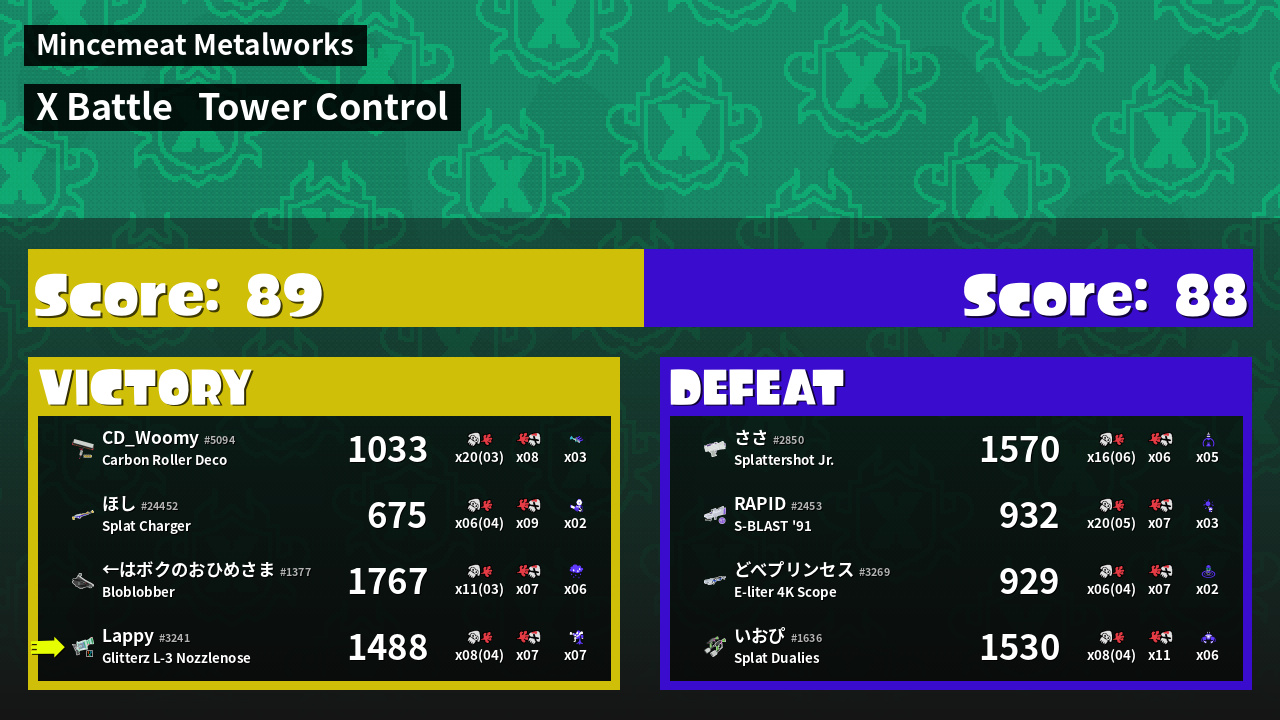 | Weapon | Glitterz L-3 Nozzlenose ( Splat Bomb / Inkjet) |