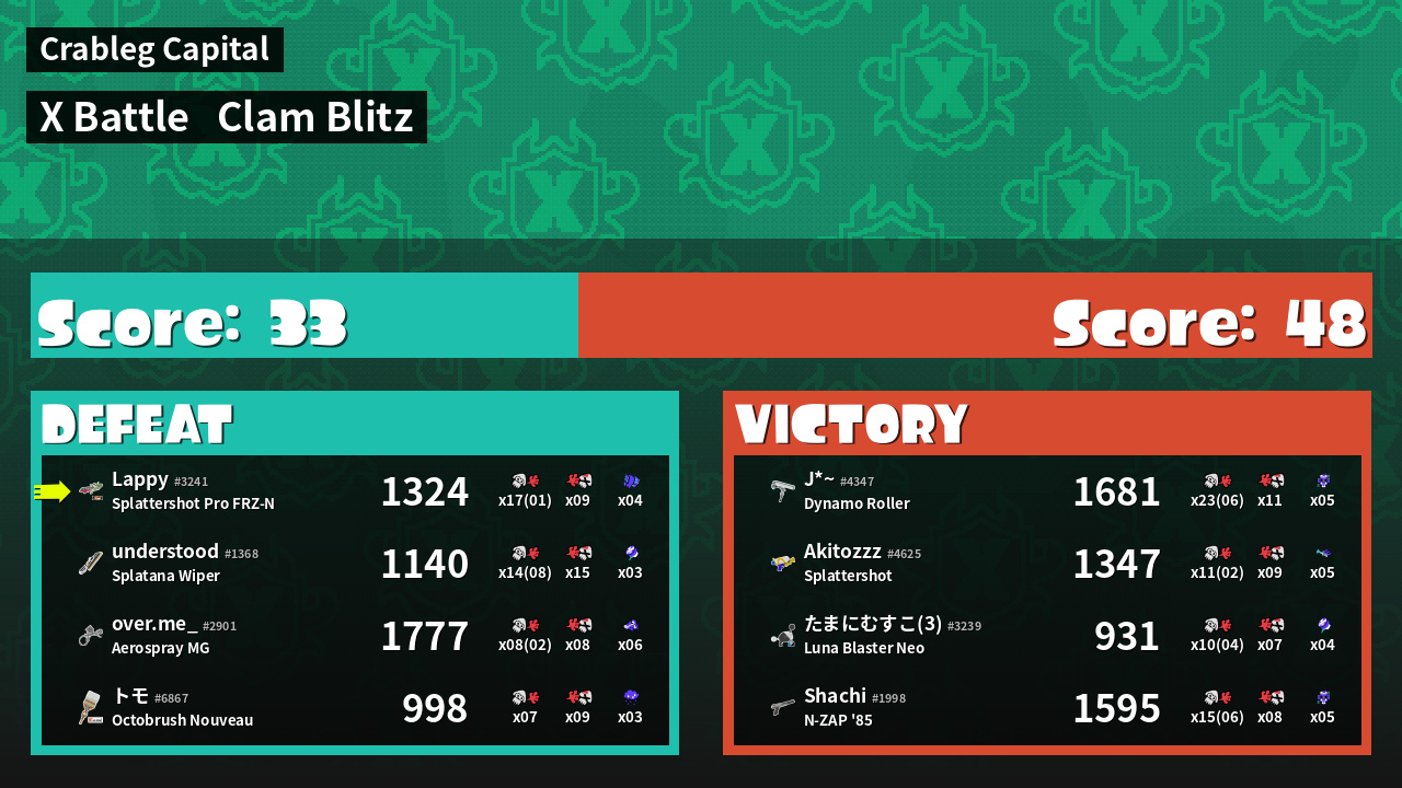 | Mode | Clam Blitz - X Battle |