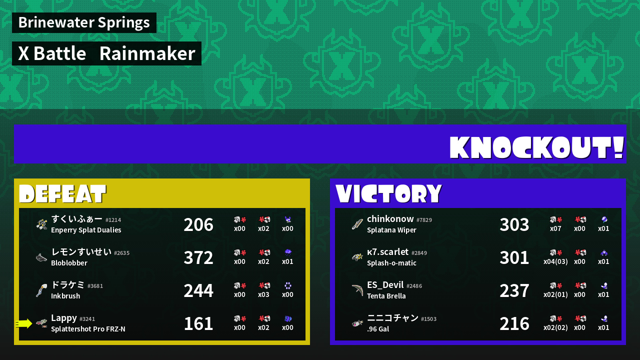 | Weapon | Splattershot Pro FRZ-N ( Splat Bomb / Tenta Missiles) |