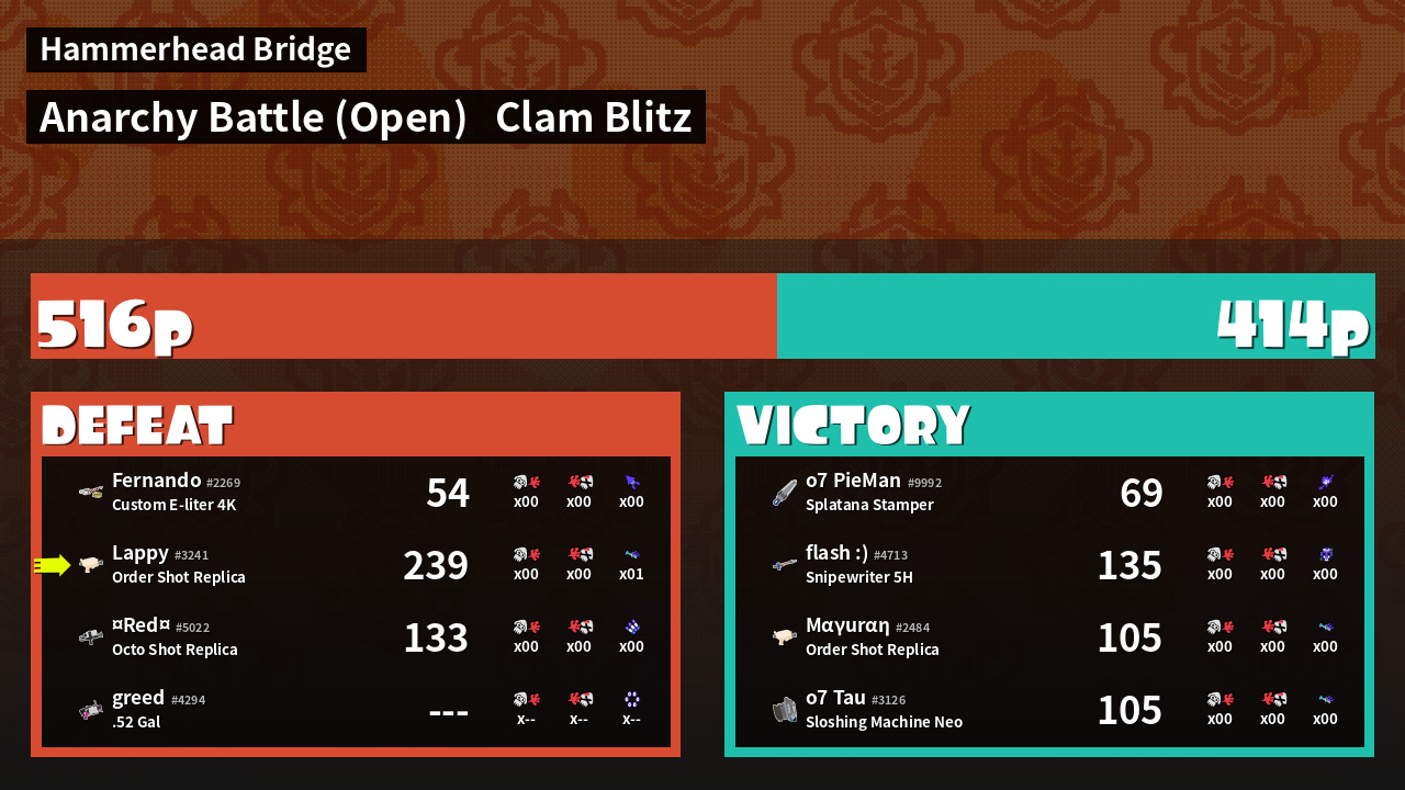 | Mode | Clam Blitz - Anarchy Battle (Open) | ||