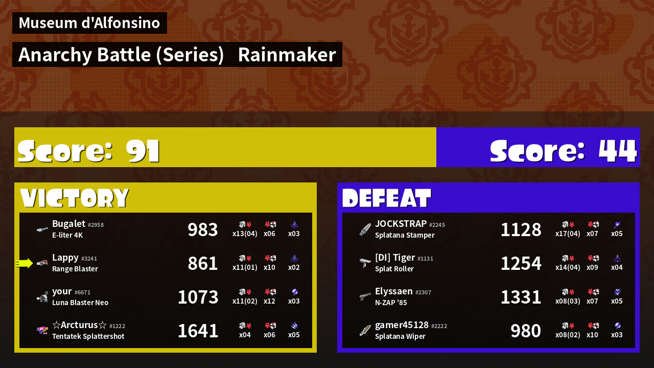 Kills / Deaths | 10 + 1 / 10 = Kill Ratio: 1.00 | ||