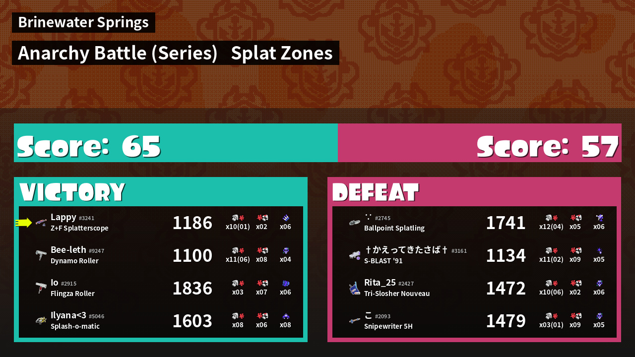 | Mode | Splat Zones - Anarchy Battle (Series) |