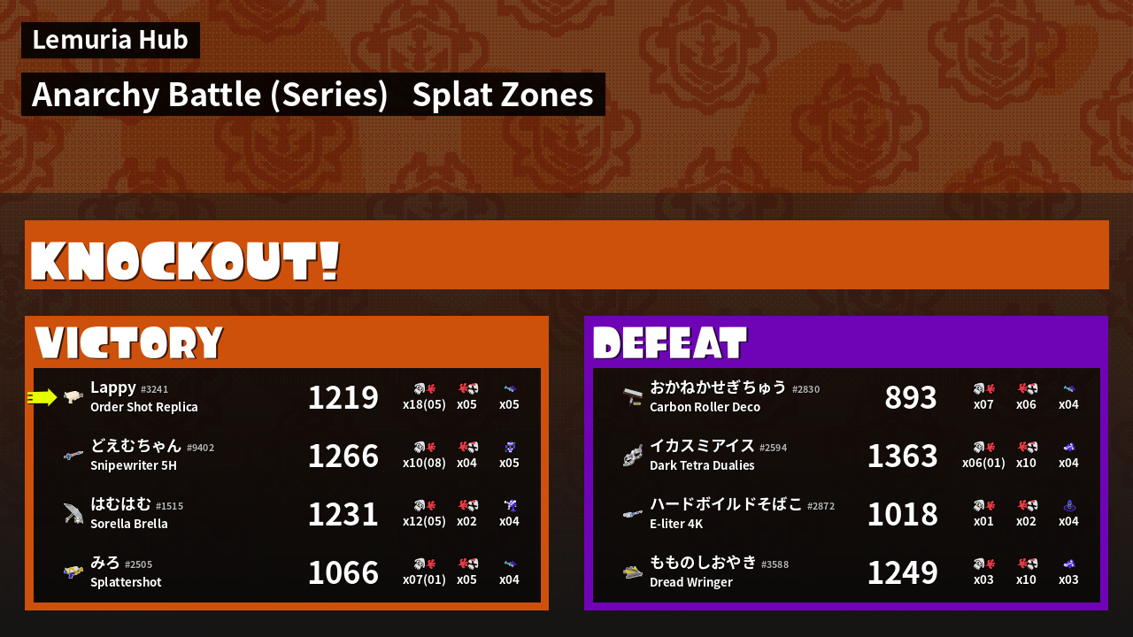 | Mode | Splat Zones - Anarchy Battle (Series) |